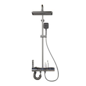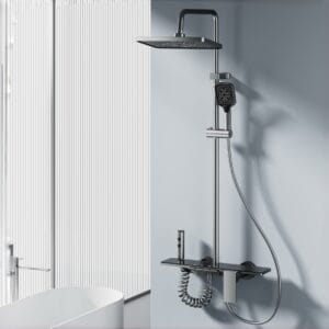 • Modern Rainfall Shower System with Handheld Shower & Bathroom Shelf – Aluminum Alloy Shower Set